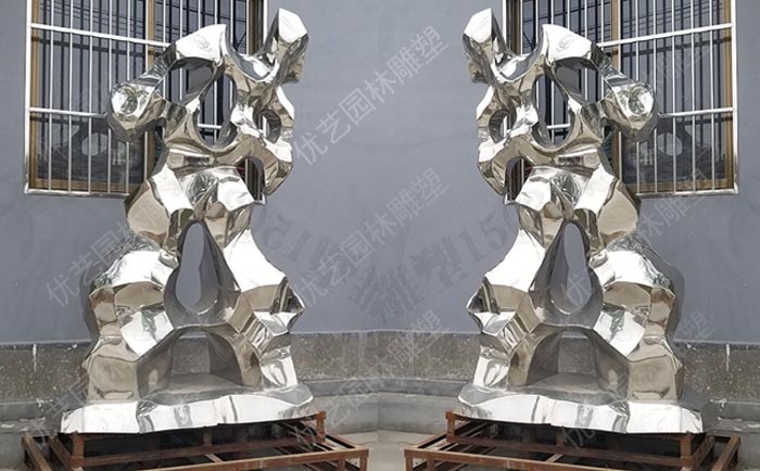 優藝園林雕塑是專業的不銹鋼假山雕塑廠家,設計、生產的不銹鋼假山雕塑有很多種,一般用在庭院園林建設中,針對不同的建筑風格,擺放不同風格的不銹鋼假山雕塑。