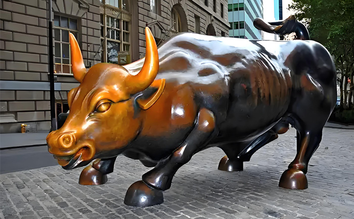 紐約曼哈頓的華爾街銅牛,無疑是全球最具影響力的銅牛雕塑之一。這尊由意大利裔藝術(shù)家阿爾圖羅?迪?莫迪卡創(chuàng)作于 1989 年的作品,重達 3.2 噸,以肌肉虬結(jié)的軀體、昂首前沖的姿態(tài),成為 “牛市” 的象征。其誕生背景頗具傳奇色彩:在 1987 年美股崩盤后,藝術(shù)家自掏腰包 36 萬美元鑄造銅牛,連夜安放在紐約證券交易所前的圣誕樹下,寓意 “經(jīng)濟復(fù)蘇”。盡管初期因 “非法放置” 引發(fā)爭議,但民眾對它的熱愛最終讓其落戶于百老匯大街,成為紐約的城市名片。2009 年,中國國旗首次在銅牛旁升起,見證了中美關(guān)系的深化;而 2019 年的搬遷計劃,則引發(fā)了全球?qū)ζ湮幕瘍r值的再思考。這尊銅牛不僅是金融市場的晴雨表,更傳遞著逆境中昂揚向上的信念。